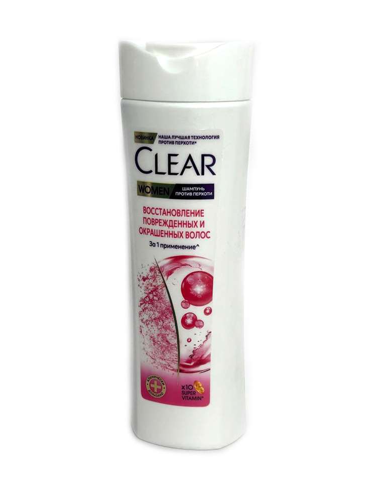 Clear Women-ის ქერტლის საწინააღმდეგო შამპუნი, რომელიც სპეციალურად შექმნილია დაზიანებული და შეღებილი თმისთვის.