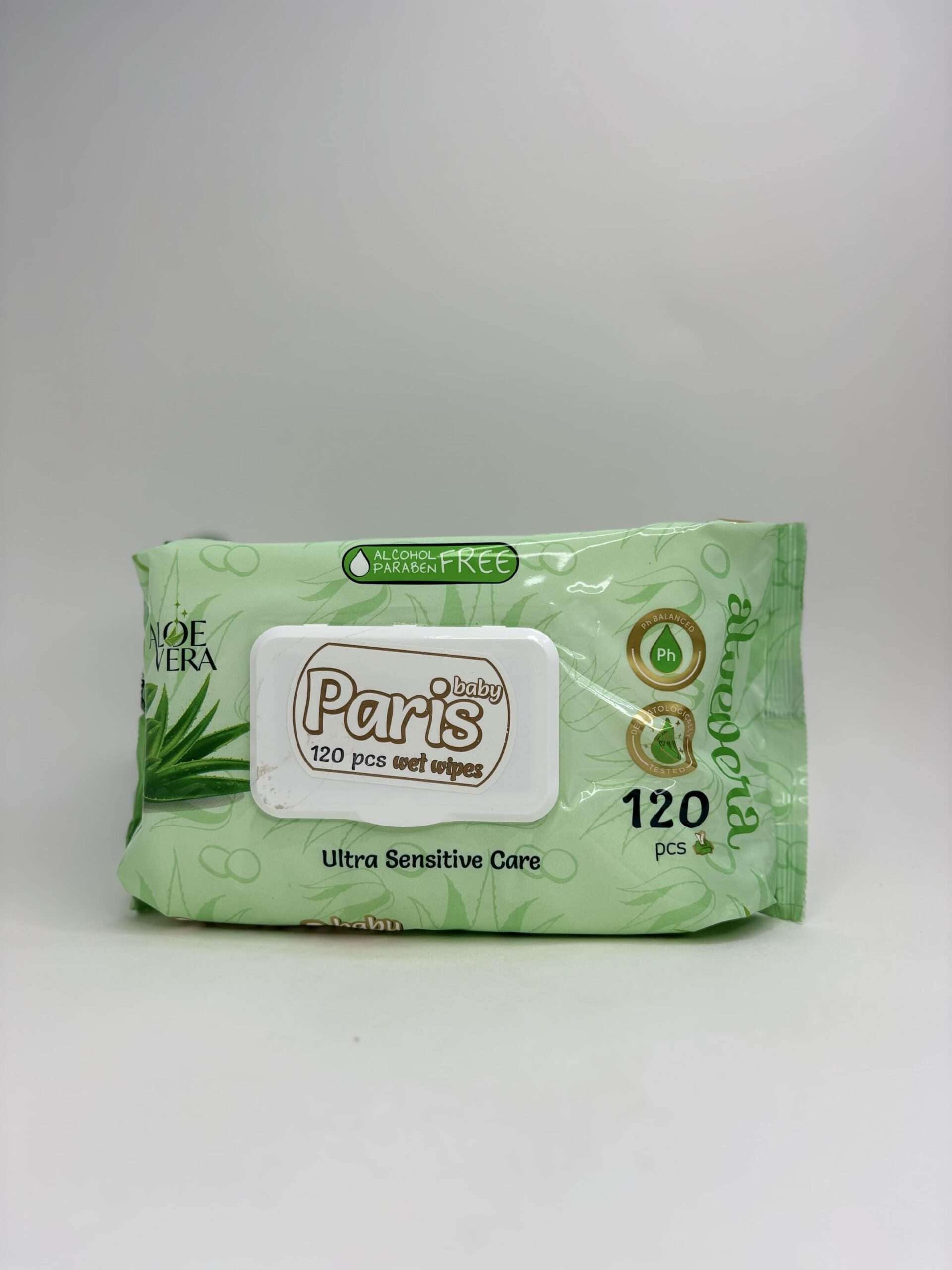 Paris – პარიზი, სველი ხელსახოცი, საბავშვო, ალოე, 120 ცალი